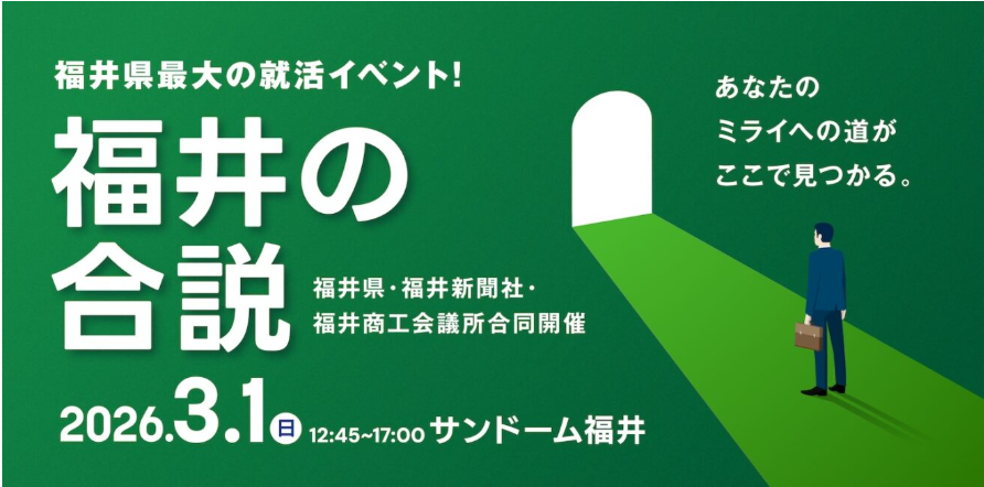 メディカルジャパンは、2026年3月1日(日)開催の「企業ガイダンス2026(福井の合説)」に出展いたします。