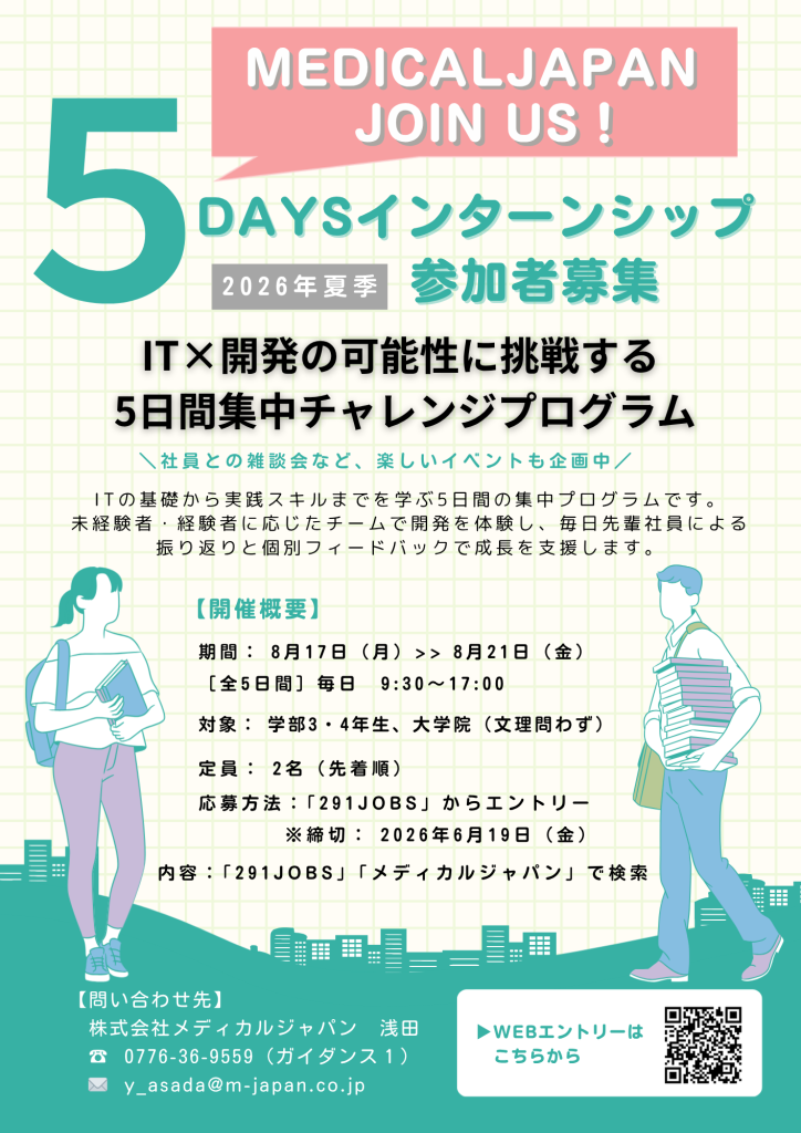 ※「291JOBS」にて「メディカルジャパン」で検索ください。
